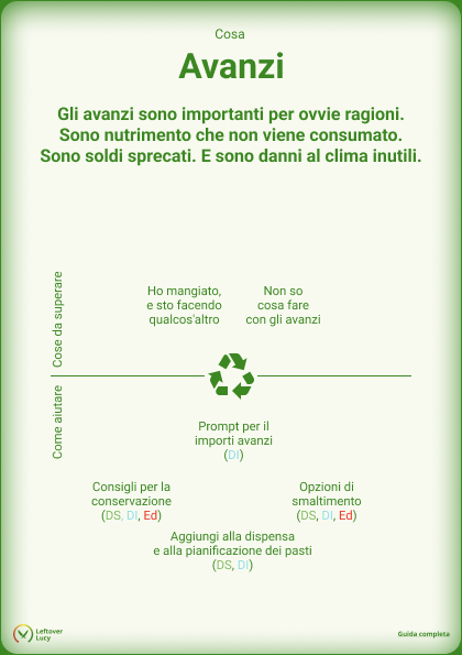 Per garantire il successo di Leftover Lucy, è importante considerare l’intero percorso alimentare dall’inizio alla fine e viceversa come un sistema: