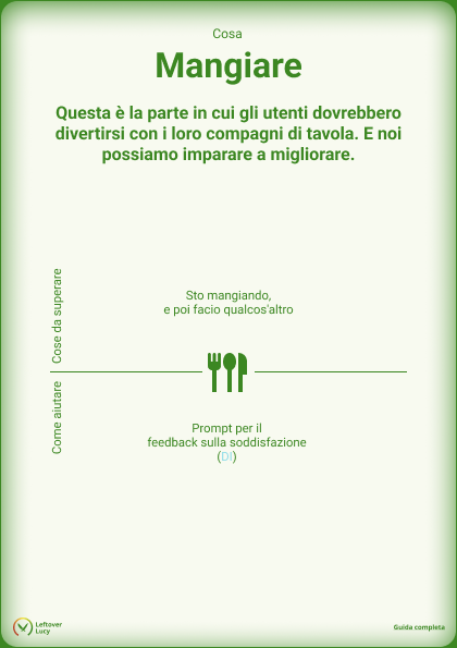 Il modo migliore per aiutare i consumatori è suggerire loro delle opzioni per gli avanzi. Il sistema sa esattamente cosa c’era nel pasto e quali opzioni sono disponibili. Una guida semplice e intuitiva fa la differenza in questo caso.